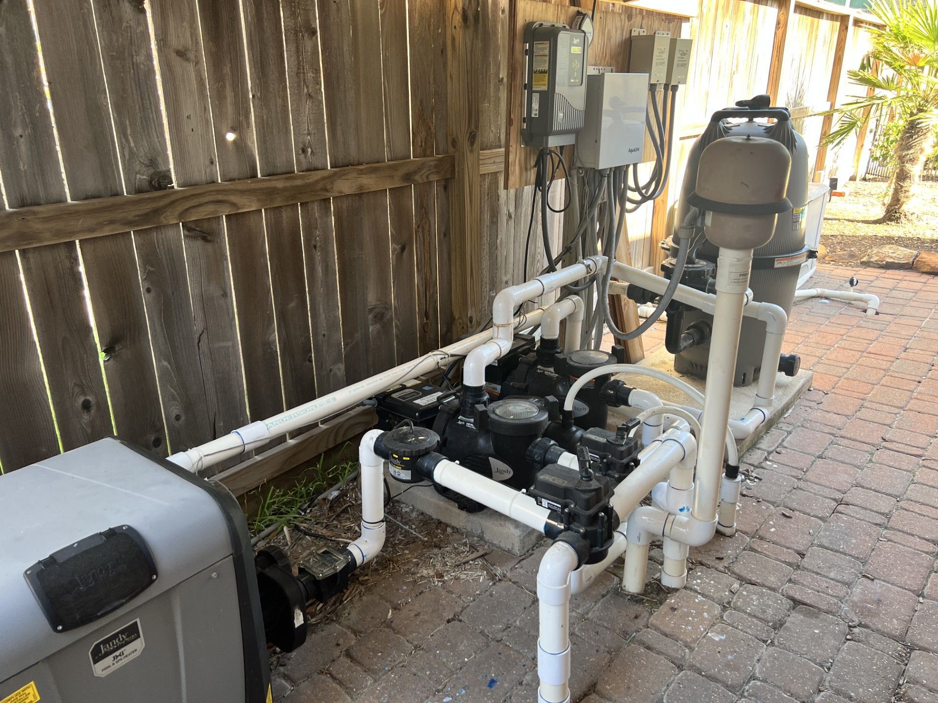 We remove the old pump, check the plumbing and electrical connections for compatibility, and install the new unit with proper bonding and grounding to meet local electrical code. In Houston, we make sure the pump is positioned to avoid flooding during heavy rain and that the controller is protected from direct sun exposure.